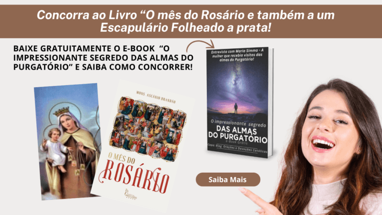 Entretanto, sugiro a baixar o e-book “o Impressionante segreda das almas do purgatório” escrito a partir de uma entrevista com Maria Simma, feita pela Irmã Emanuel. Com certeza será um grande aprendizado sobre o purgatório e também provas de que o purgatório existe.
